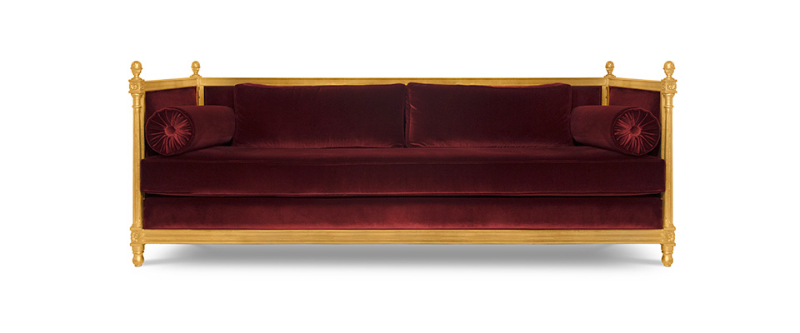 MALKIY Sofa was named after a king and priest mentioned in the Book of Genesis whose name means justice and king of righteousness. This tuxedo sofa is upholstered in cotton velvet and has legs in aged golden leaf, promising to make an alluring statement.