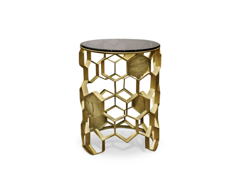 Manuka is one of the most unique and beneficial forms of honey in the world and made from a flower that only grows in New Zealand. The MANUKA Side Table is an exquisite piece that resembles a glorious beehive. The aged matte brass structure and bronze glass table top make this brass side table the perfect fit for a modern interior design.