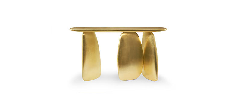 Dolmens are ancient stone monuments from the neolithic period. These unique structures were the inspiration behind ARDARA Console Table. With a finish in gold leaf with a gloss varnish, this modern console table will give a unique twist to any interior design.