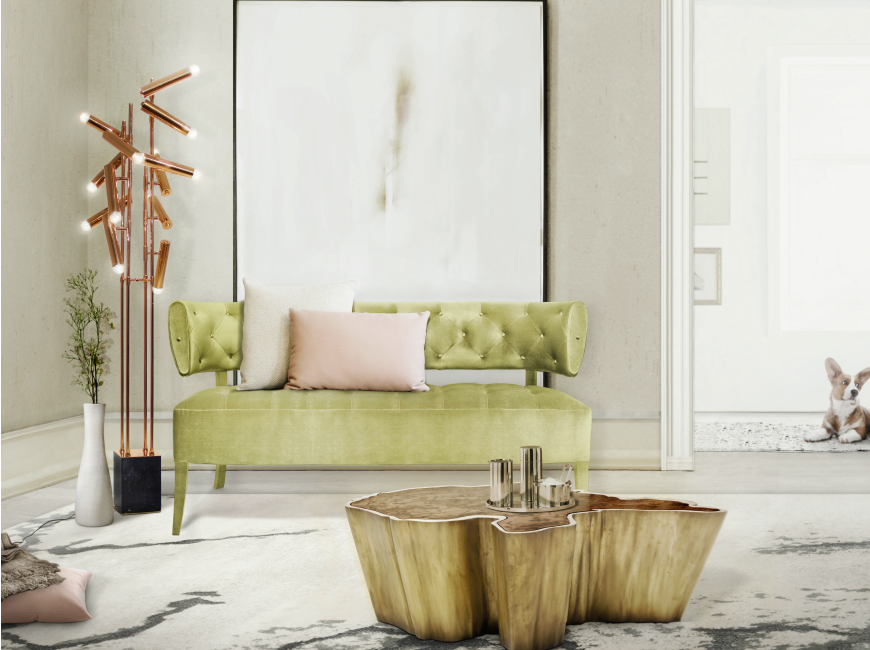 This rug matches perfectly with the cream-beige colored FITZROY SOFA. This sofa has an unique design with its curved shape and uneven back inspired by the Fitz Roy Mountains. This fully upholstered velvet sofa will grant your living room interior the best comfort.